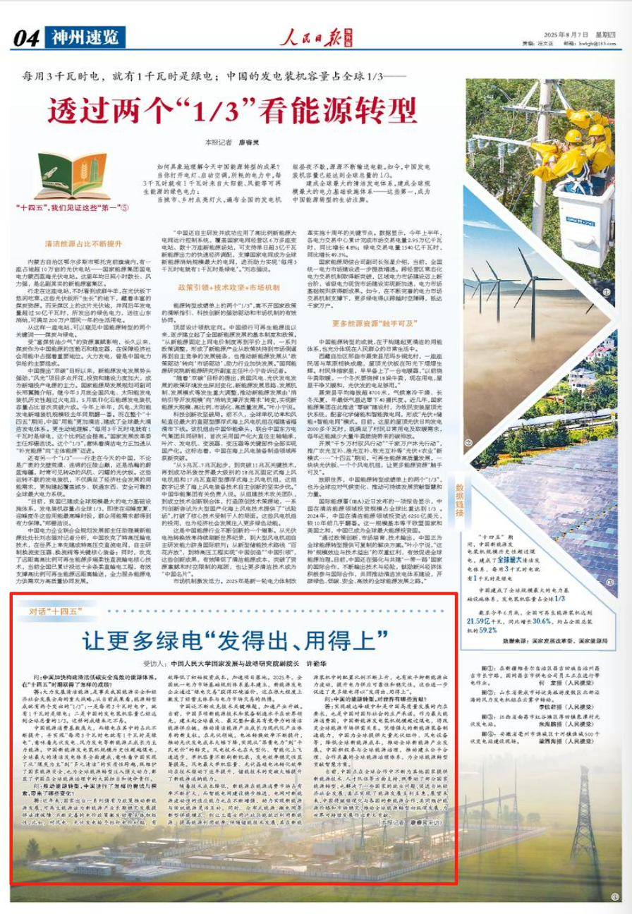 观点丨许勤华:让更多绿电“发得出、用得上”