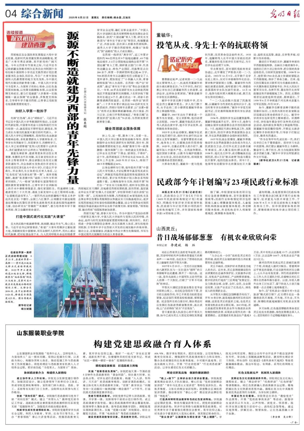 聚焦丨张东刚:源源不断造就建功西部的青年先锋力量
