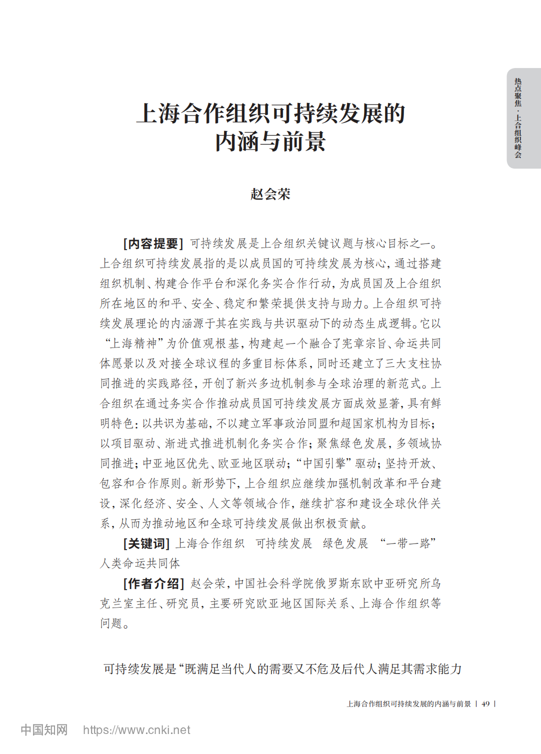 学术动态 | 赵会荣:上海合作组织可持续发展的内涵与前景