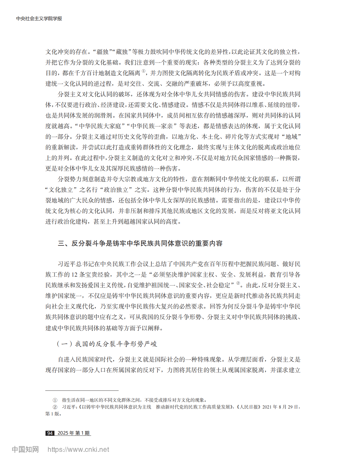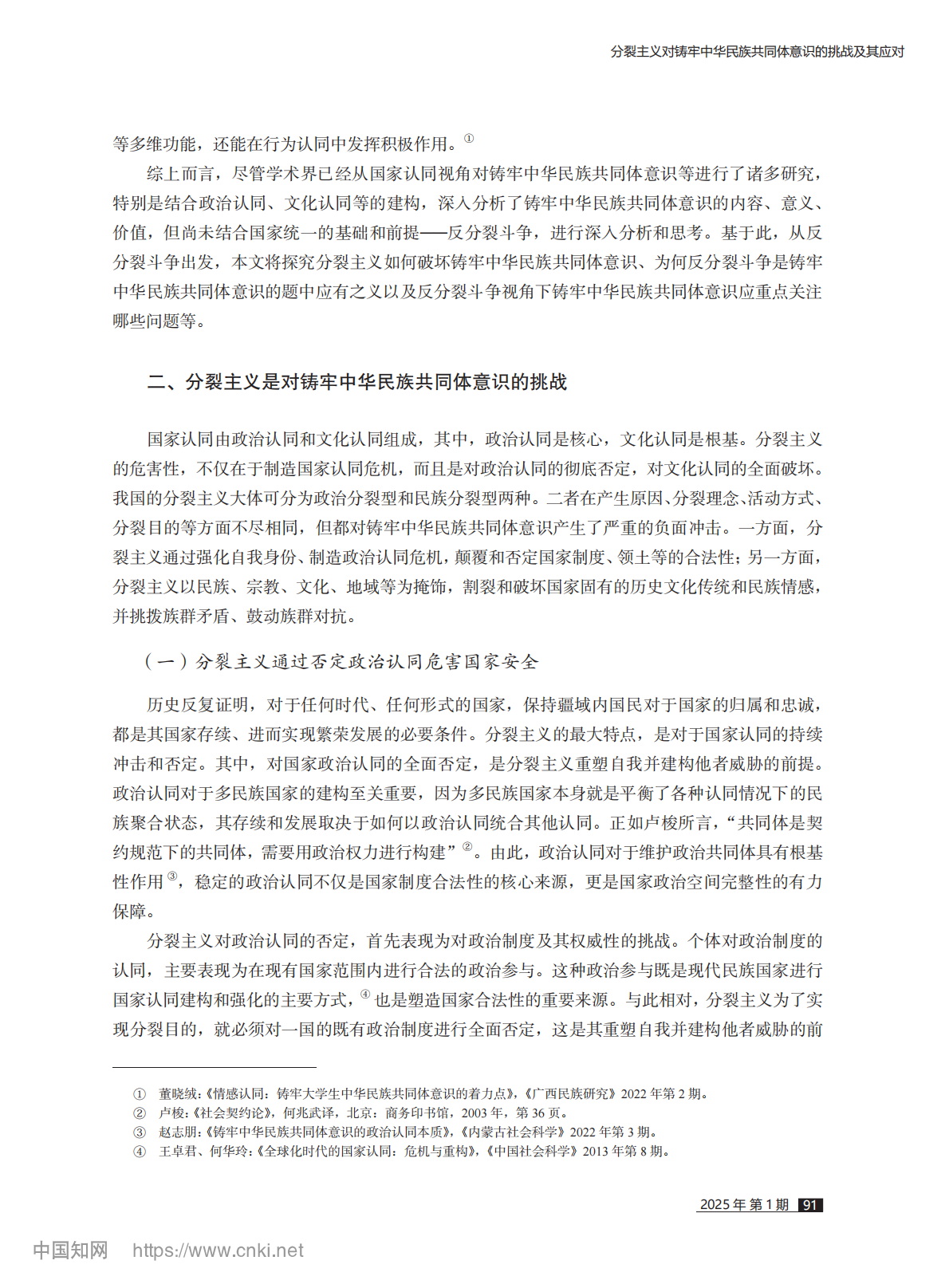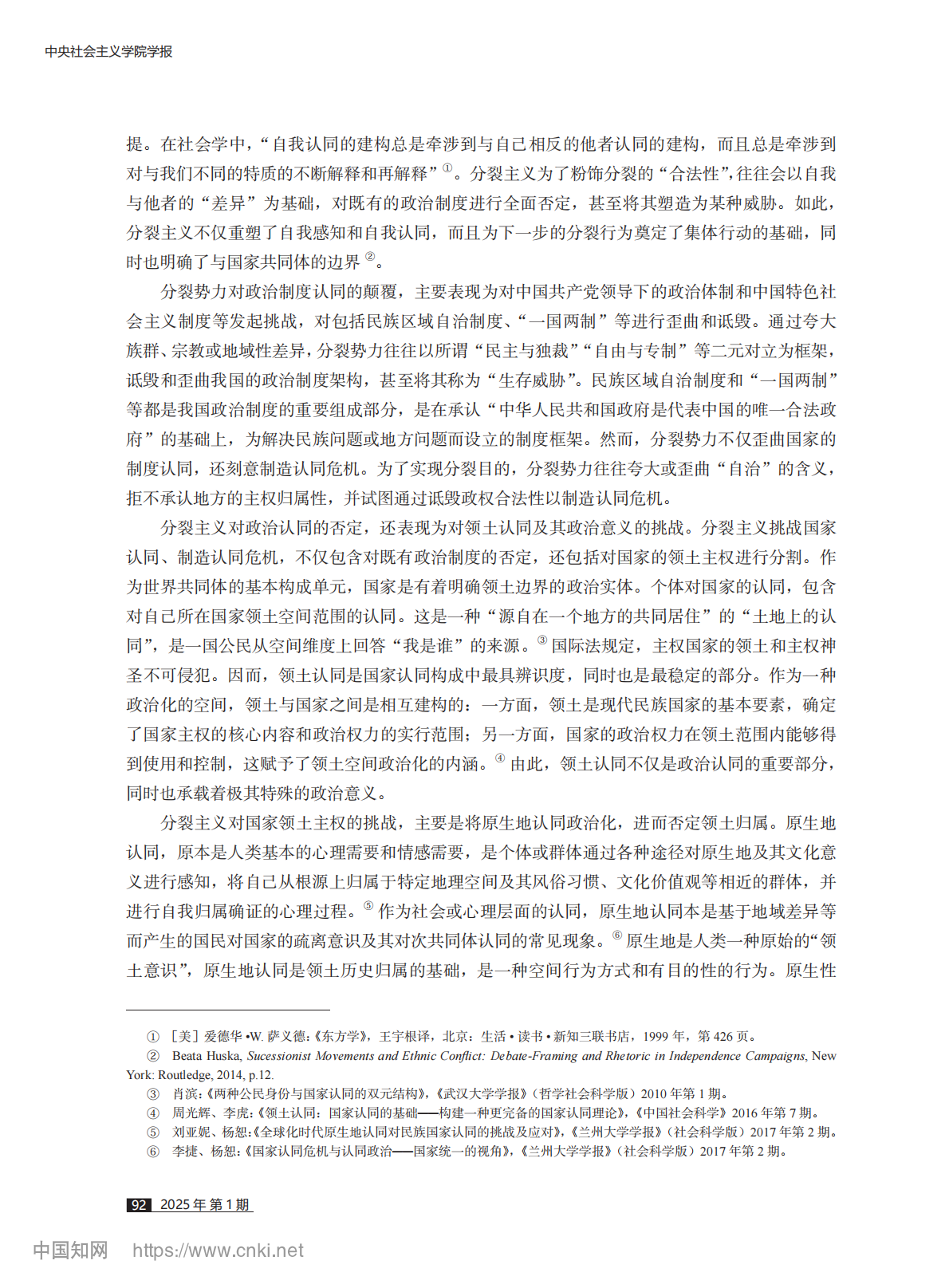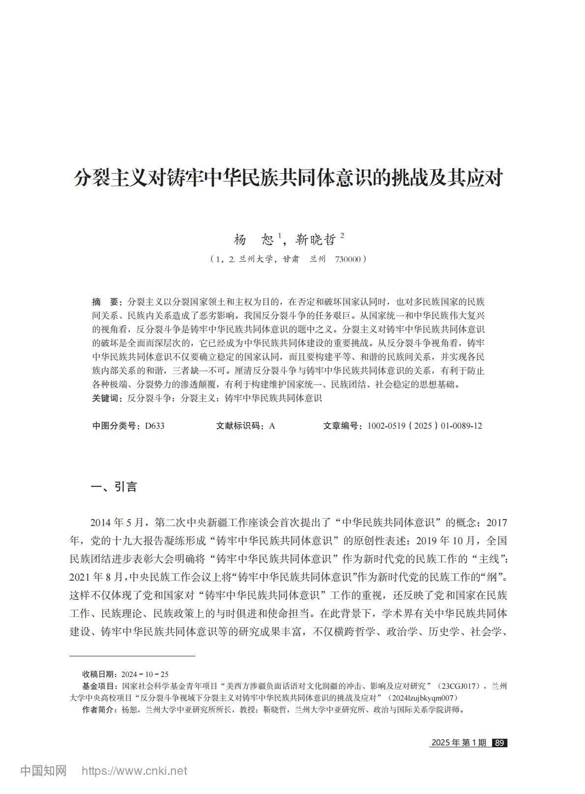 引用格式:杨恕,靳晓哲.分裂主义对铸牢中华民族共同体意识的挑战及其应对[J].中央社会主义学院学报,2025,(01):89-100.